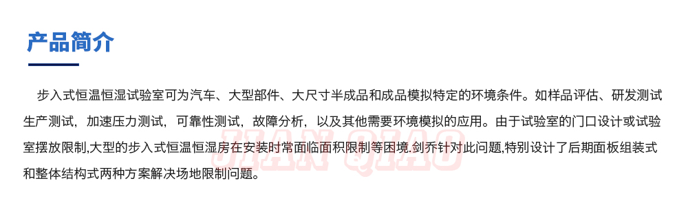用途:步入式恒溫恒濕試驗室可為汽車、大型部件、大尺寸半成品和成品模擬特定的環境條件。如樣品評估、研發測試生產測試,加速壓力測試,可靠性測試,故障分析,以及其他需要環境模