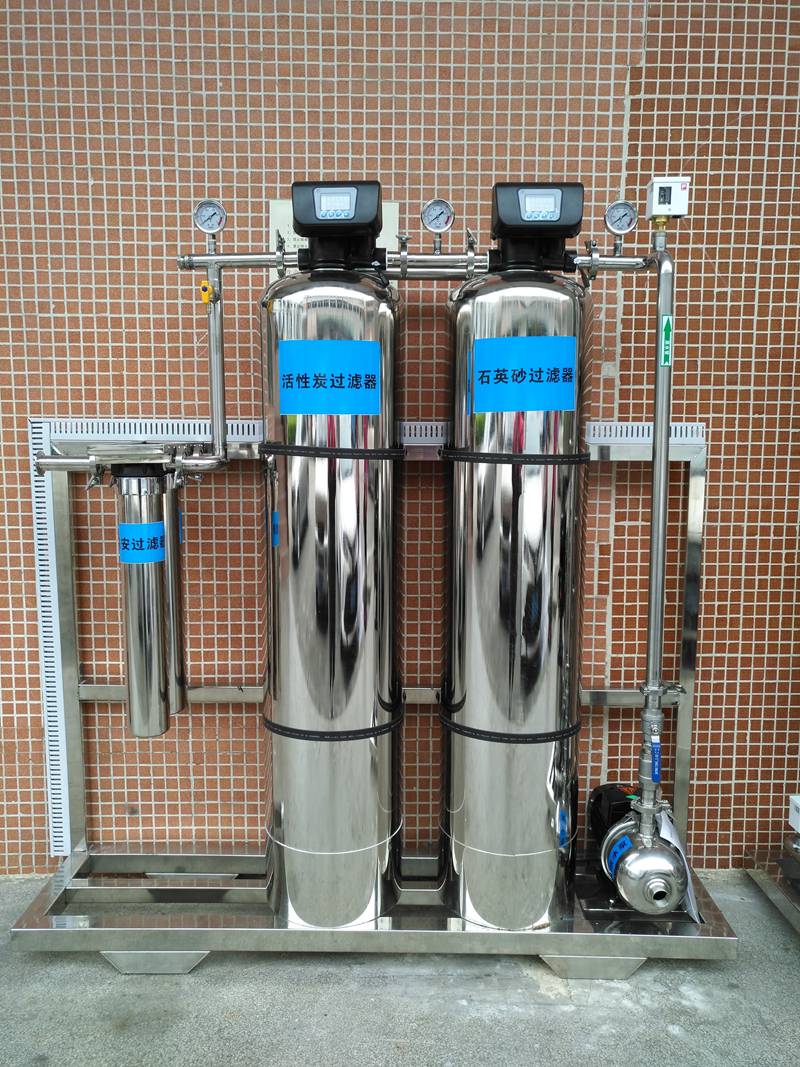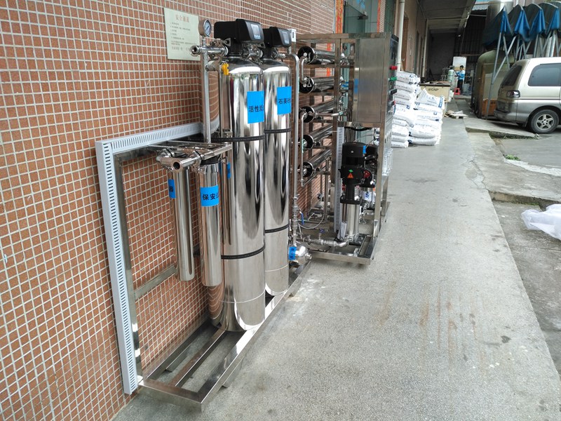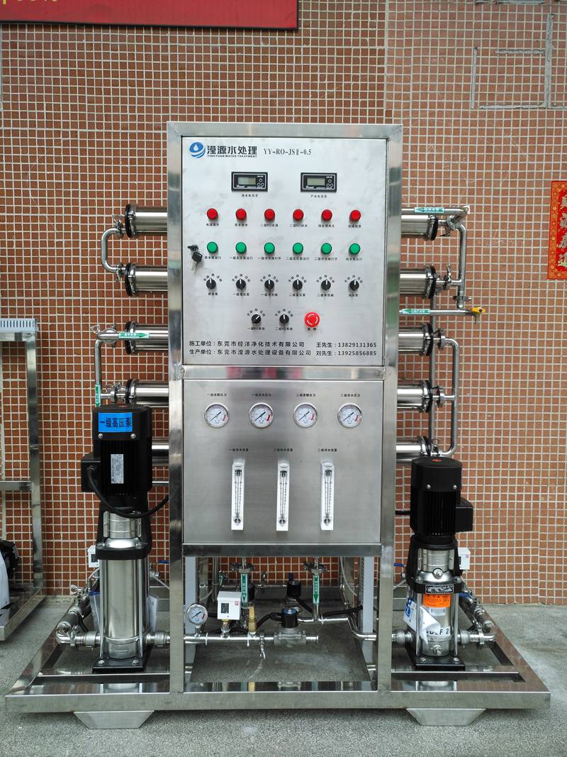原水→原水增壓泵→多介質過濾器→活性碳過濾器→軟水器→精密過濾器→首先級反滲透→PH調節裝置→中間水箱→第二級反滲透→純化水箱→輸送泵→紫外線殺菌器→微孔過濾器→用水點(推薦工藝)。