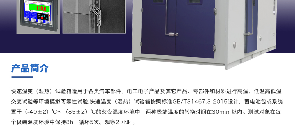 用途:快速溫變(濕熱)試驗(yàn)箱適用于各類汽車部件,電工電子產(chǎn)品及其它產(chǎn)品、零部件和材料進(jìn)行高溫、低溫高低溫交變試驗(yàn)等環(huán)境模擬可靠性試驗(yàn).快速溫變(濕熱)試驗(yàn)箱按照標(biāo)準(zhǔn)GB/T31