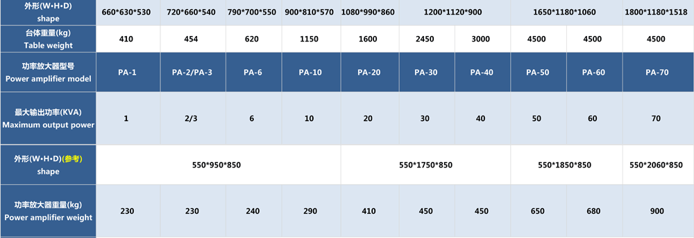 * 位移可選76mm或100mm.uDisplacement peak-to-peak value of  76mm or 100mm.