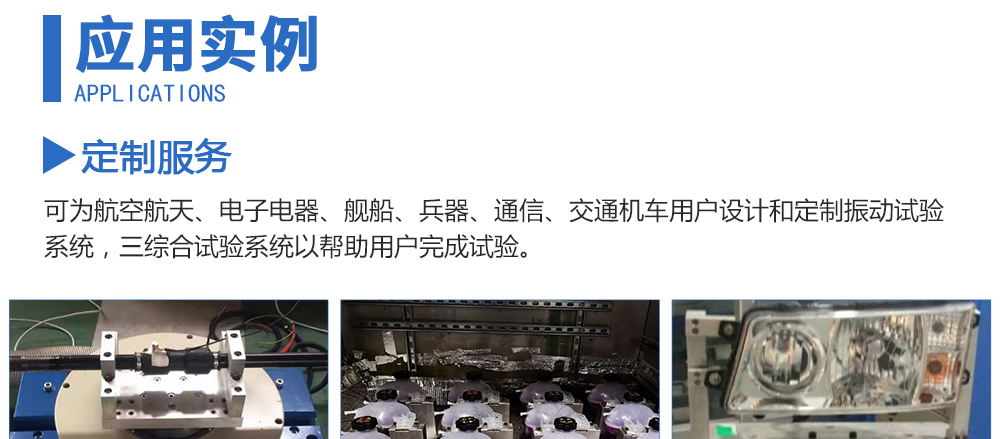 用途:可為航空航天、電子電器、艦船、兵器、通信、交通機(jī)車用戶設(shè)計(jì)和定制振動(dòng)試驗(yàn)系統(tǒng),三綜合試驗(yàn)系統(tǒng)以幫助用戶完成試驗(yàn)。